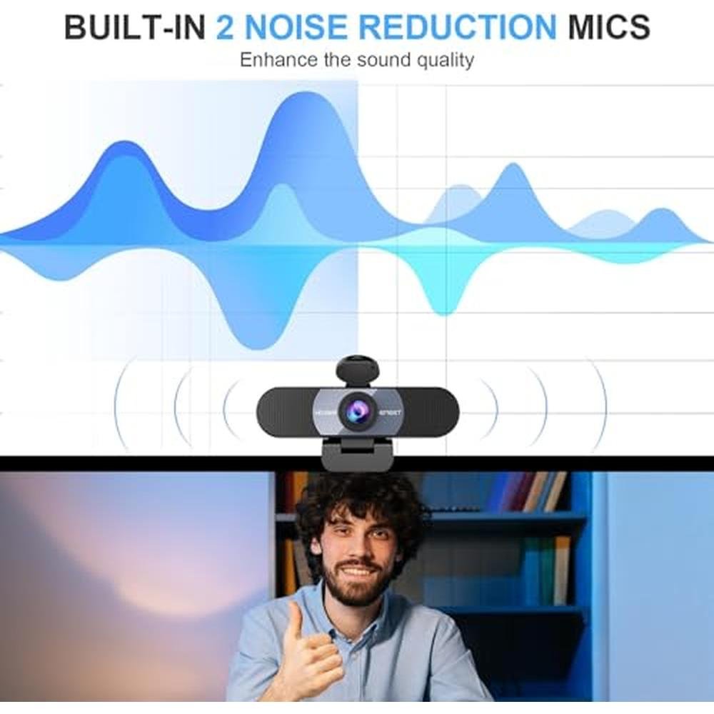 - [Built-in 2 Noise Reduction Mics] EMEET webcam with microphone for desktop is 2 built-in omnidirectional noise reduction microphones, picking up your voice and filtering out background noise to create an excellent radio effect.EMEET computer webcam enables you to enjoy crystal clear voice for hassle-free communication. (When installing the web camera, remember to select EMEET C960 usb webcam as the default device for the microphones)