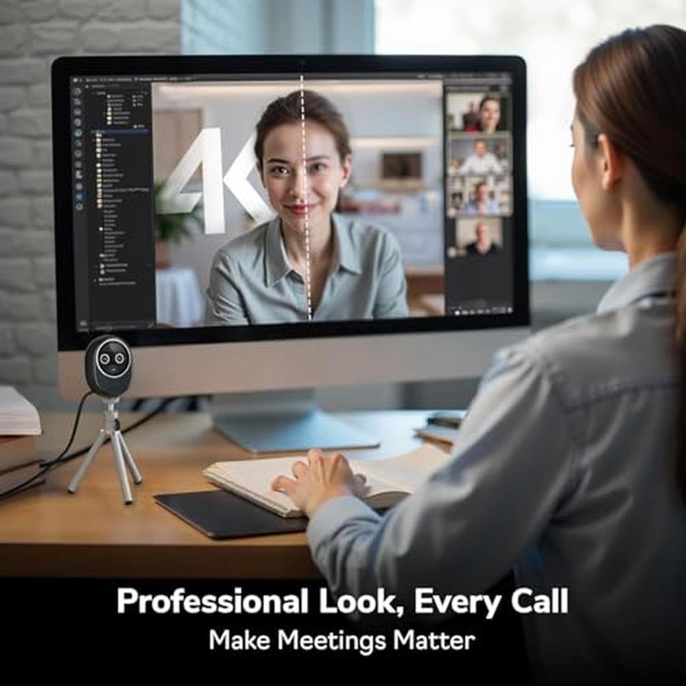 - Design Exquisiteness, Unmatched Style - The 4K webcam for PC shines with rounded, sleek design, and luxurious pearl-finished materials. Launching in classic black and pearl white, with a mint green coming soon, it exudes sophistication. Smaller and lighter than a phone, it combines portability with refined aesthetics. Its appearance makes it ideal for beauty livestreams, trendy desk setups, or as a chic gift. Whether used as a functional tool or stylish decor, it blends technology with fashion.