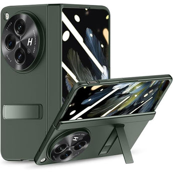 for Oneplus Open Case, Built-in Screen Protector, Full Hinge Protection, Metal Kickstand, Camera Protection, Thin & Slim Cover 5G 2023-Green