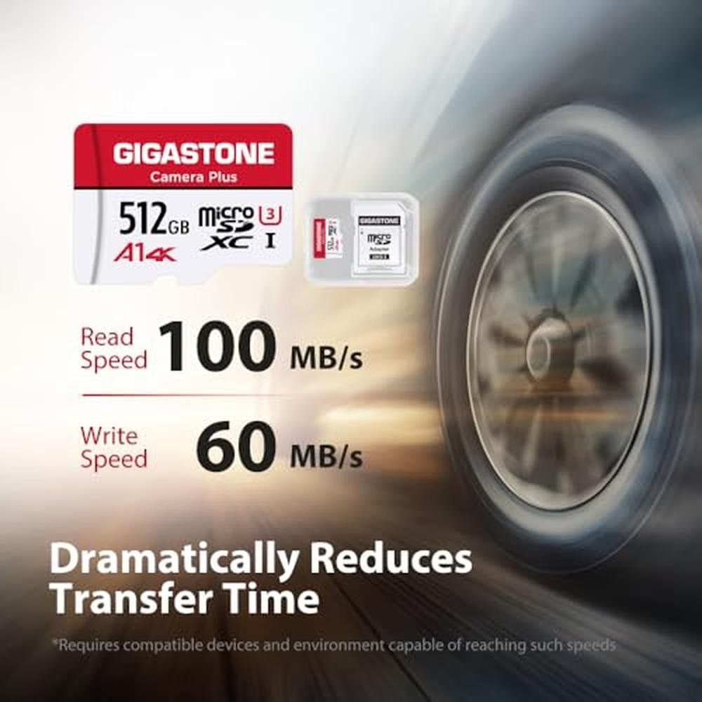 GIGASTONE 512GB Micro SD Card 2-Pack, Camera Plus, for GoPro, Action Camera, A1 Run App for Smartphone, Nintendo-Switch Compatible, 100MB/s, 4K Video Recording, Micro SDXC UHS-I A1 V30 U3 Class 10