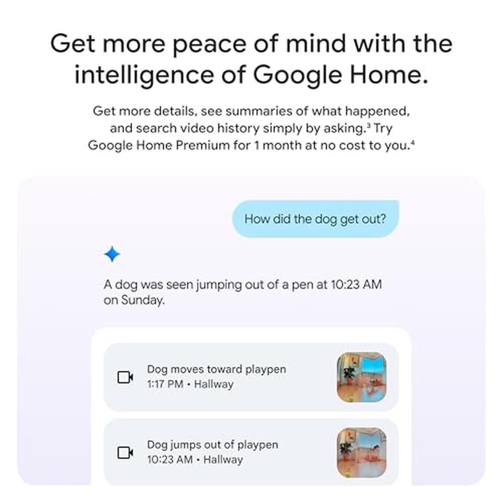 - Meet the smarter, sharper wired Google Nest Cam Indoor; with 2K HDR video and Gemini, it knows what to look out for and what to do next[1,2,3](Gemini features require a Google Home premium subscription; try it for 1 month at no cost to you)[4]