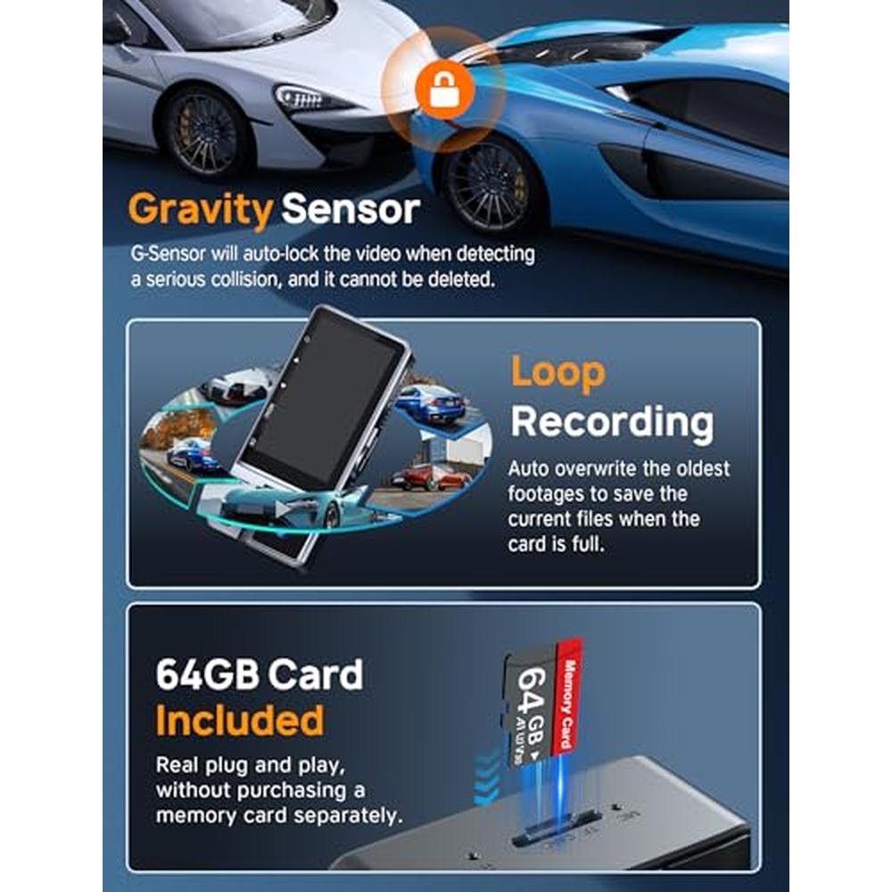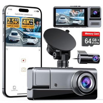 Indulge in the pinnacle of in-car surveillance with the Icesky Three Channel Dash Cam, expertly designed to deliver a comprehensive view of the road ahead, behind, and inside your vehicle. As a premium front dash camera for cars, this model boasts WiFi 6 connectivity, enabling seamless App control and video sharing. With its advanced dash front and rear camera capabilities, capturing footage in stunning 2.5K and 4K+2.5K resolutions, you'll have unparalleled visibility and evidence in case of an incident. The included 64GB card ensures ample storage for your recordings, and the 24H parking mode provides around-the-clock protection. Whether you're looking for a sophisticated dash cam to elevate your driving experience or seeking a reliable witness in case of an accident, the Icesky Three Channel Dash Cam is the ultimate choice. Experience the future of driving with this cutting-edge, high-performance dash cam, engineered to redefine the standards of in-car surveillance.