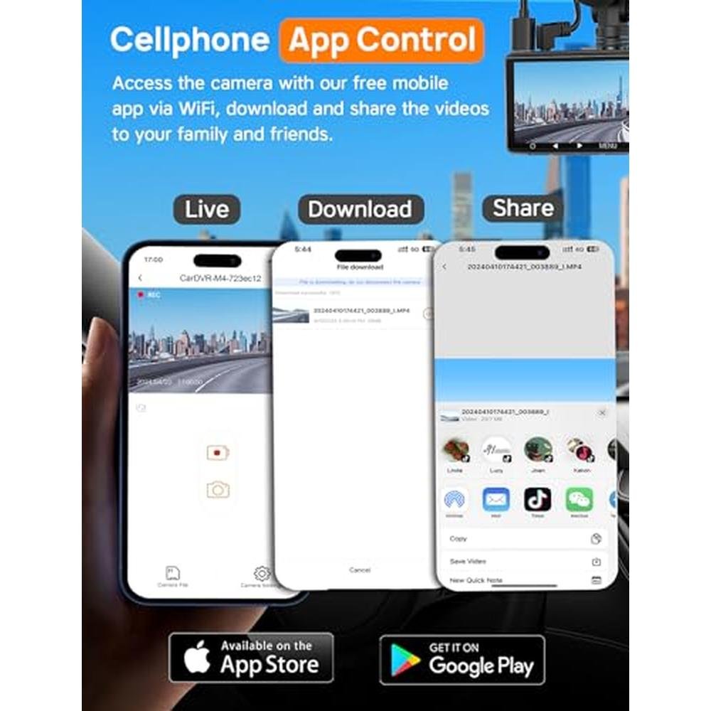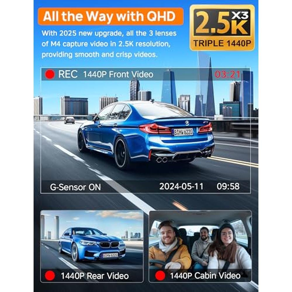 Dash Front Camera | Icesky Three Channel Dash Cam 2.5K+4K+2.5K | WiFi 6 Triple Way