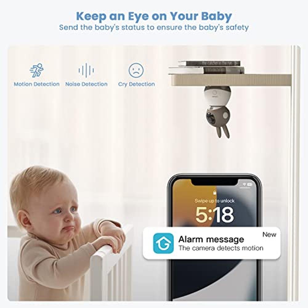• 360 View & Auto-Tracking: Baby monitor with camera and audio support rotates 355 horizontally and 60 vertically, so you can easily see the whole room. You can control the camera's vision remotely, or turn on the human detection function, then the camera will automatically follow your baby to help you always pay attention to the status.