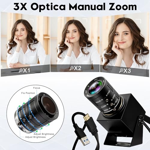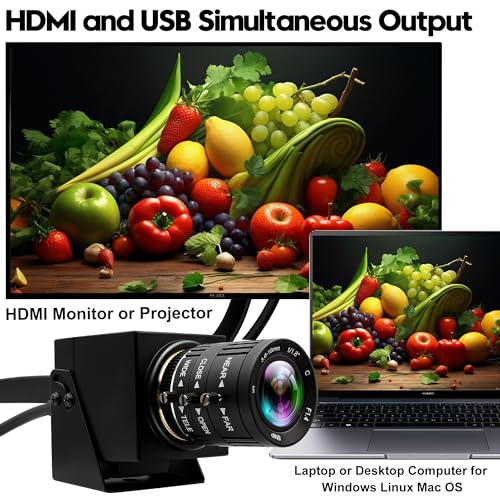 Special Features USB3.0 4K HDMI USB Camera, 3.6-10mm 3X Manual Variable Focus Lens, 60fps High Speed USB Camera, H.264/MJPEG/Yuy2 Optional, 4k USB and HDMI Camera Simultaneous Output Camera with UVC for Computer Laptop PC, Mini Size, Light Weight