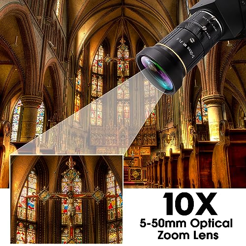 - Features a 5-50mm 10X manual focus lens for precise close-up imaging and a wide range of magnification options