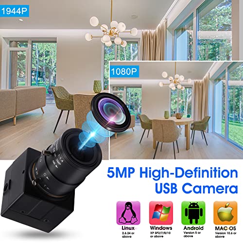 Experience high-quality video capture with the IFWATER USB Camera, a 5MP webcam designed for versatility and clarity. As a top choice for those searching for a reliable camera ifwater, this device offers 4X variable focus, allowing for precise close-ups and a wide field of view. With its ability to deliver 1944P resolution, it's ideal for industrial applications, security surveillance, and everyday computer use. Compatible with Mac OS, Windows, Linux, and Raspberry Pi, this plug-and-play camera ensures ease of use across various platforms. Whether you're looking for a camera ifwater for professional or personal use, this UVC CCTV camera is a superior choice, offering exceptional performance and value.