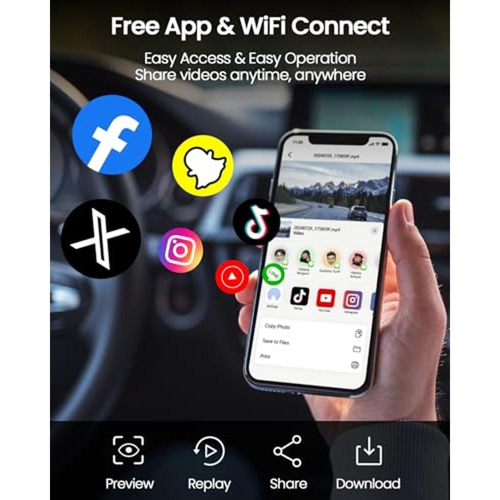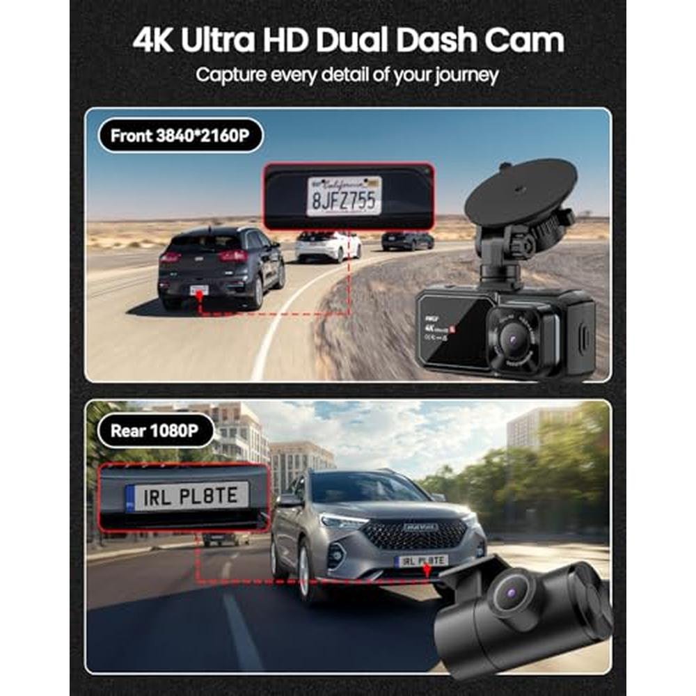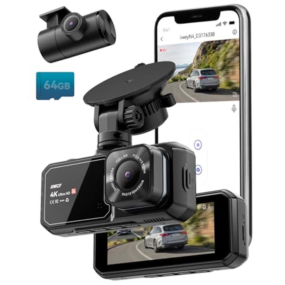 IIWEY 4K Dash Cam | Dual UHD Camera with WiFi and Free 64GB Card | Enhanced Road Safety