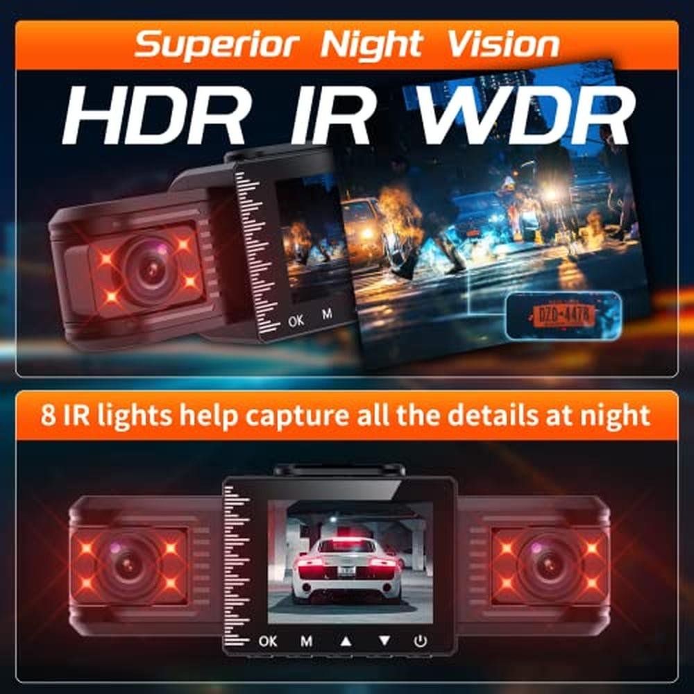 Dash Camera | iiwey T1-pro 3-Channel 1080P Front and Rear Dash Cam with Night Vision | Premium Road Safety Solution