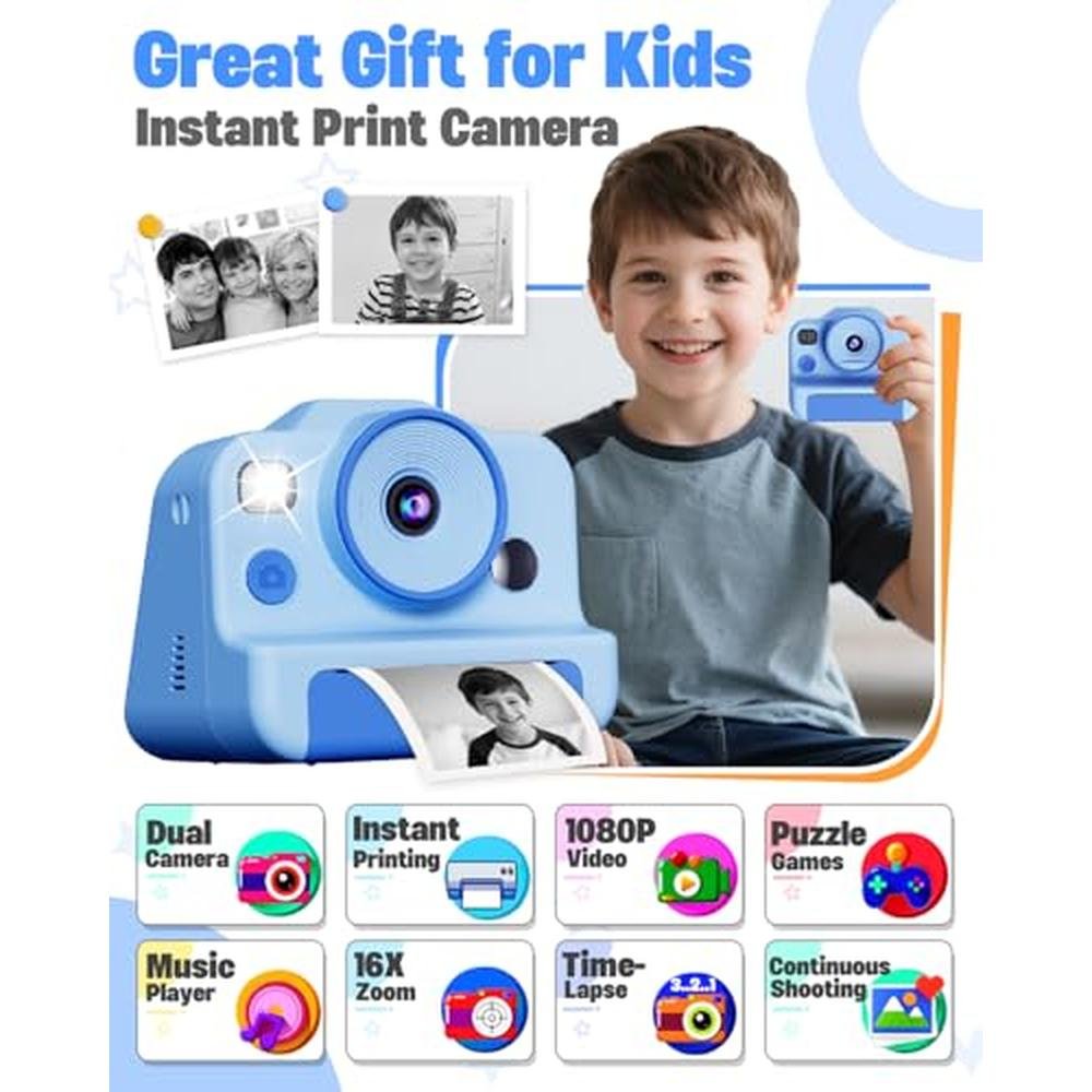 Camera Kids | Instant Print Camera for Kids with 1080p Videos and Dual Selfie | Perfect Gift for Boys and Girls Ages 3-12