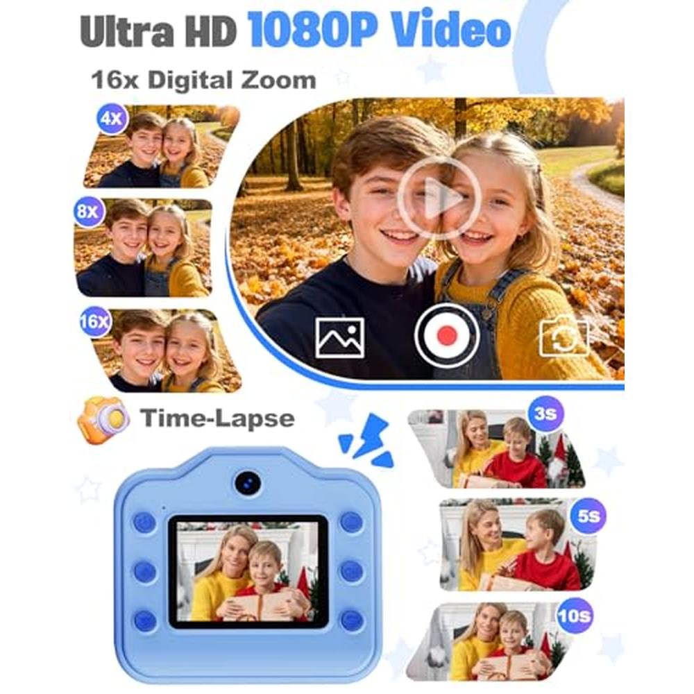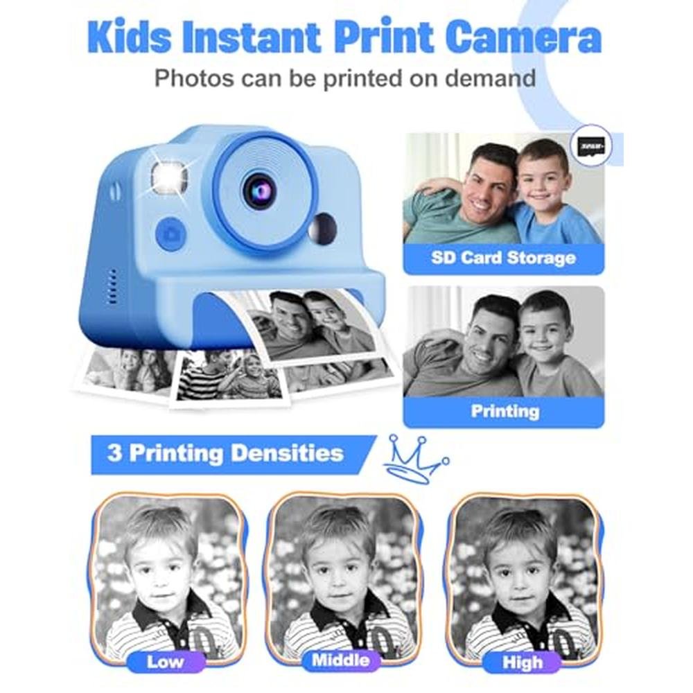 - Instant print camera for kids with 1080P video recording capability