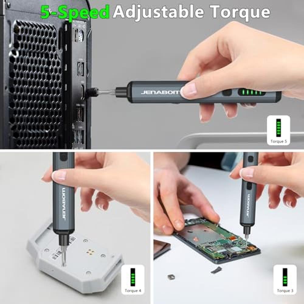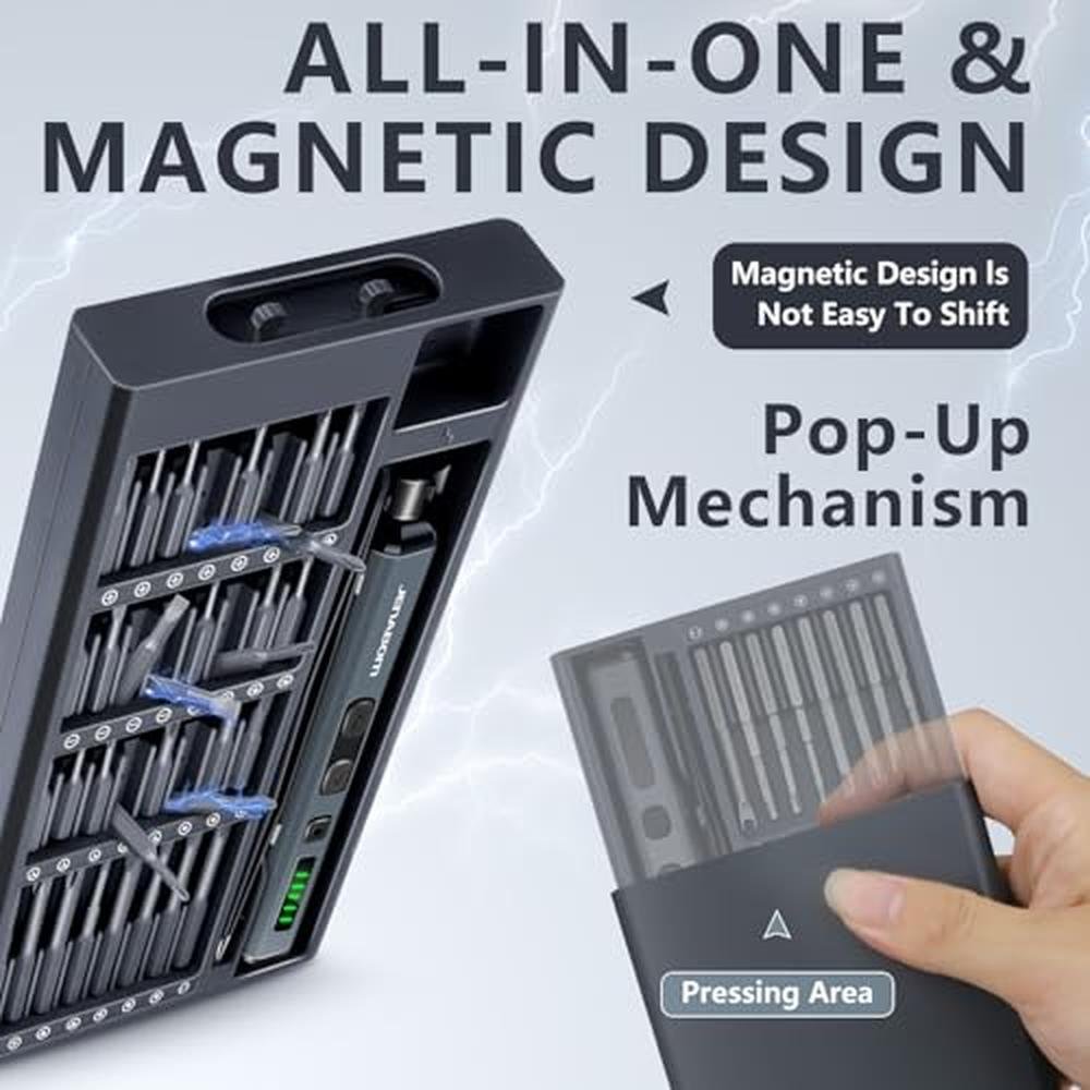 JENABOM 3.7V Electric Screwdriver, Mini Precision Screwdriver Set, 64 Magnetic Bits, Magnetic Storage, Rechargeable,Cordless, Repair Tool Kit for Electronics Phone Camera Laptop Watch