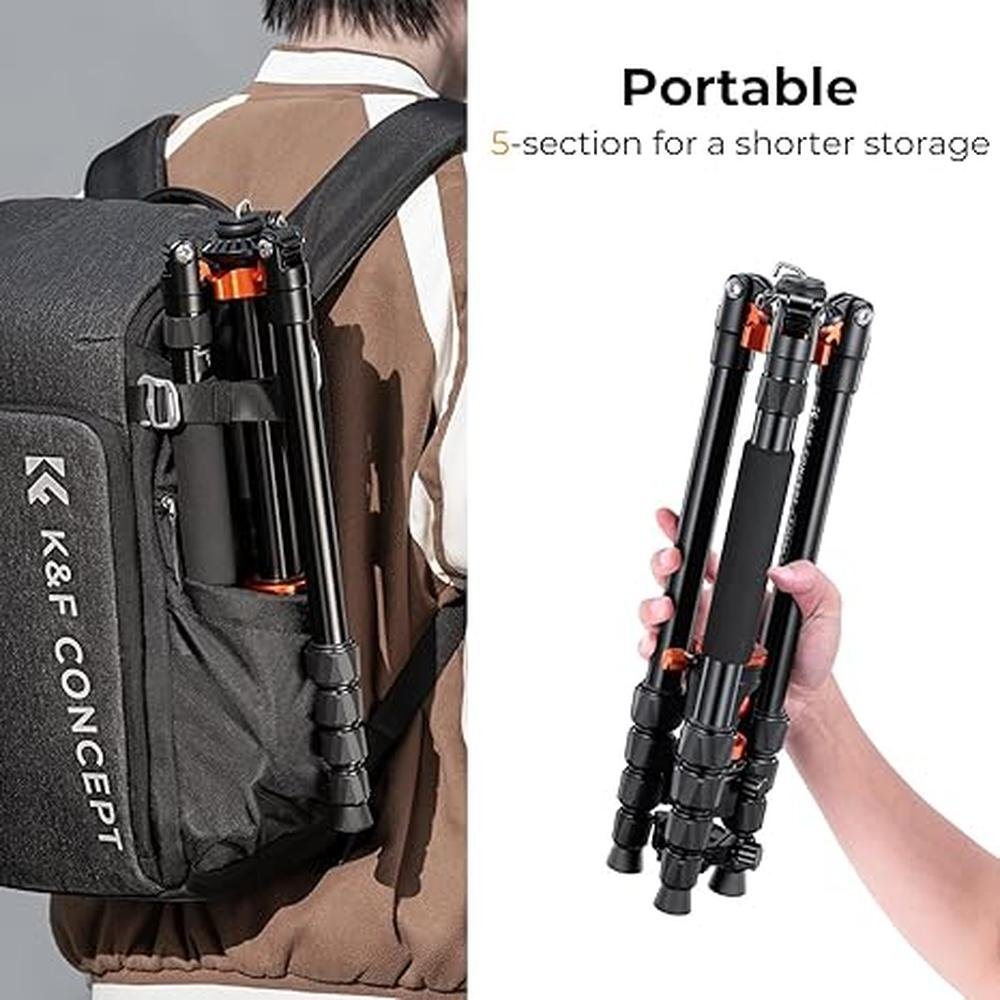 - Compact Flexible5 sections leg can adjust the height from 22 to 67 the N. weight with ball head is only 3.72lbs can be 180reflexed, which is super portable with tripod carrying bag.