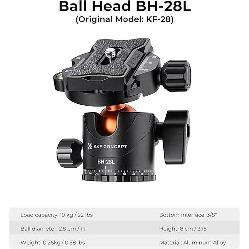 K&F Concept 67 inch Camera Tripod Horizontal Aluminum Tripods Portable Monopod with 360 Degree Ball Head Quick Release Plate for DSLR Cameras T255A4+BH-28L (TM2515T1)
