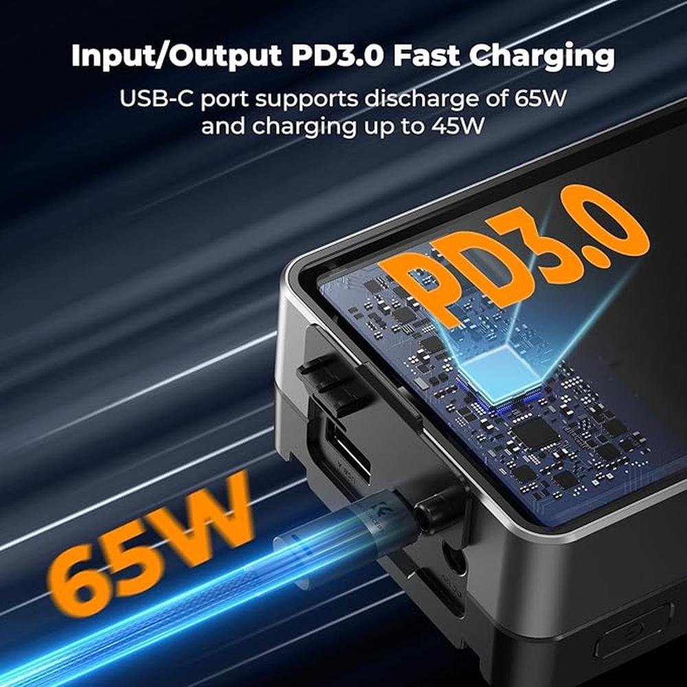 - 65W PD3.0 Output The KF Concept 50Wh V-Mount Battery supports 65W PD fast discharge and 45W fast charge, allowing you to charge your camera, laptop, or tablet quickly. Fully charge your battery in just 2 hours for more shooting time without the wait.