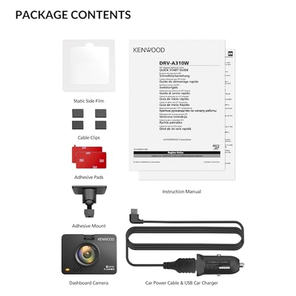Experience the ultimate in-car surveillance with the KENWOOD DRV-A310W GPS Dash Cam, a top-of-the-line camera device designed to capture every moment on the road in stunning Full HD. This advanced camera system boasts an impressive array of features, including Wide Dynamic Range and High Dynamic Range capabilities, ensuring that every detail is crystal clear, even in low-light conditions. With built-in Bluetooth and Wi-Fi connectivity, you can easily transfer footage to your smartphone or tablet using the Kenwood camera app. The DRV-A310W also features a built-in G-Sensor and collision detection, providing an additional layer of security and peace of mind while driving. Drive Smart with KENWOOD Dash Cam DRV-A301W Capture every detail of your journey in 2 MP Full HD glory. Plus, HDR technology ensures crisp and clear video, eliminating worries about underexposure or overexposure. Whether you're navigating busy city streets or scenic country roads, the DRV-A301W is your reliable eye on the road, providing peace of mind and invaluable evidence in case of any incidents. Connect the KENWOOD KCA-R110 HD rear-view camera for an HD view of what's behind you. Seamlessly connect to your smartphone using the KENWOOD DASH CAM MANAGER app, allowing you to easily view, download, and share your videos. Whether you need to review footage for an insurance claim or share a memorable drive with friends on social media, this dashcam makes it effortless. The built-in GPS and G-Sensor add layers of security, recording crucial data such as speed, location, and sudden impacts, ensuring you have a complete record of your travels. Protect your vehicle even when you're not around with the optional rear camera and Parking Mode. Keep an eye on your surroundings and record any suspicious activity, thanks to the motion sensor that activates during parked mode.