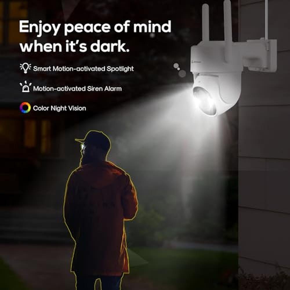 - 360 Coverage - Expand your coverage with the 2K Pan-Tilt Wi-Fi Security camera. Cover every angle and eliminate blind spots with the camera s vertical and horizontal rotation. Digitally zoom in or out to see every detail near and far.