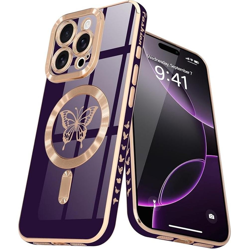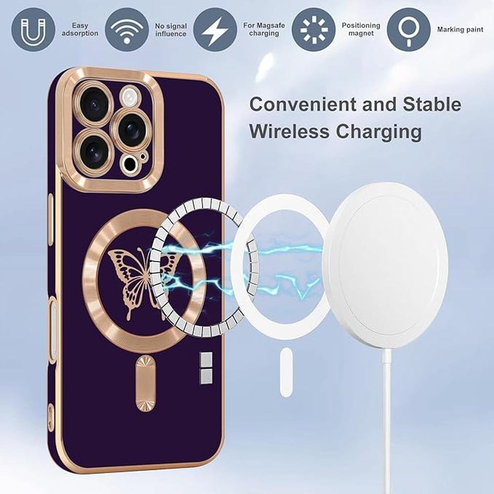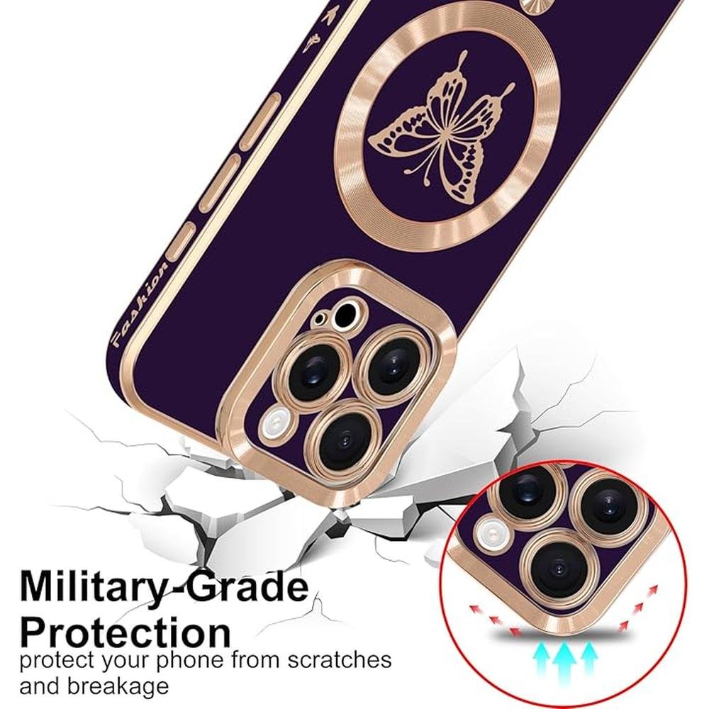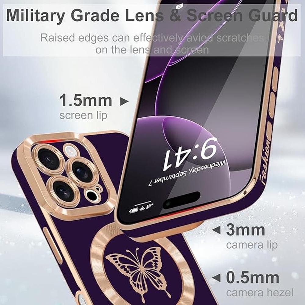 Experience the ultimate fusion of style and protection with the Lafunda Magnetic iPhone 16 Pro Case, meticulously designed for women and girls who demand a luxurious touch. This exquisite phone case boasts a stunning gold butterfly design with premium luxury plating, rendering it a sophisticated accessory for your iPhone 16 Pro. With its seamless MagSafe compatibility and advanced anti-scratch camera protection, you can indulge in effortless charging and superior defense against daily wear and tear. The high-performance shockproof cover ensures your device remains secure from accidental drops, while the vibrant purple hue adds a pop of color to your phone. Whether you're seeking a top-tier iPhone case for 16 Pro Max or a reliable iPhone case under 200, this premium accessory is sure to elevate your mobile experience.