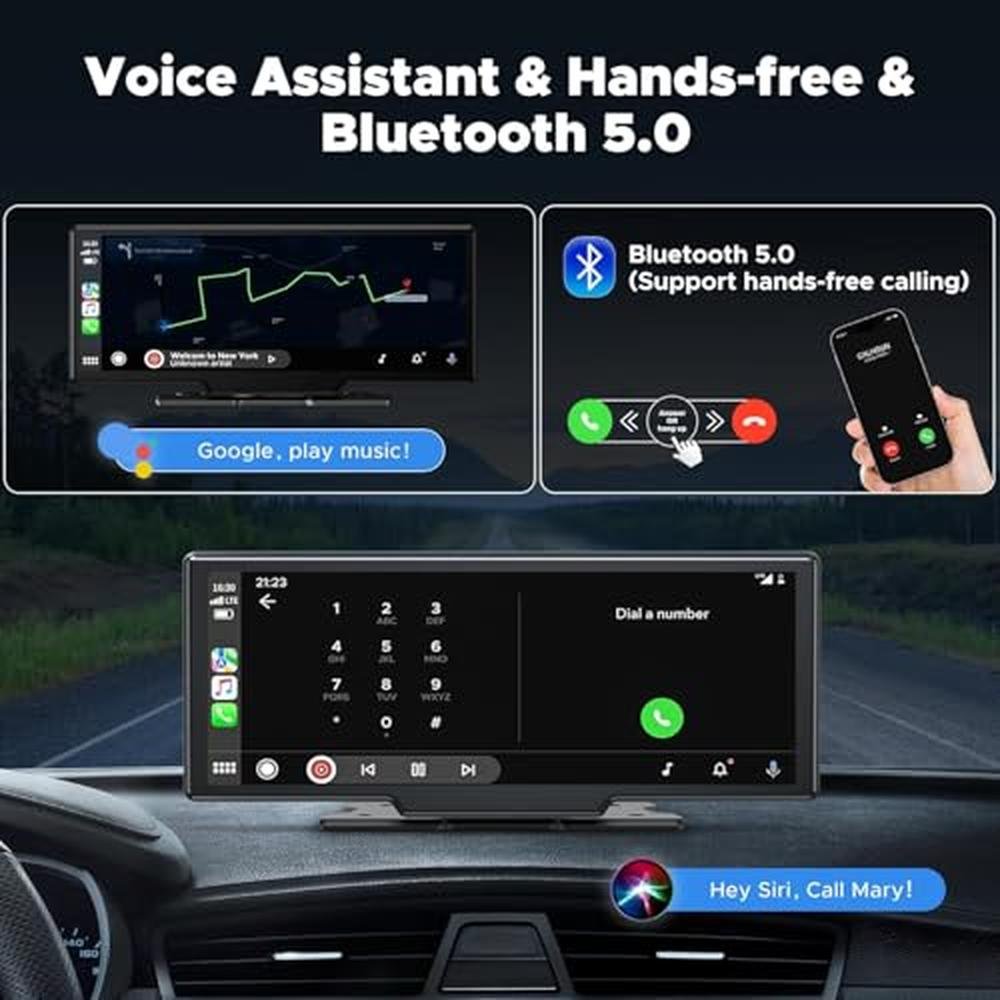 Experience the ultimate in-car entertainment and navigation with the LAMTTO 9.26 Wireless Carplay and Android Auto system, featuring a portable touchscreen GPS navigation, 2.5K dash cam, and 1080P backup camera for a seamless and safe driving experience. With Bluetooth, AirPlay, AUX, FM, Google, and Siri integration, you can effortlessly connect your devices and access your favorite music, podcasts, and apps on the go. The LAMTTO car screen is designed to be user-friendly and customizable, allowing you to personalize your home screen and enjoy a responsive touch interface.