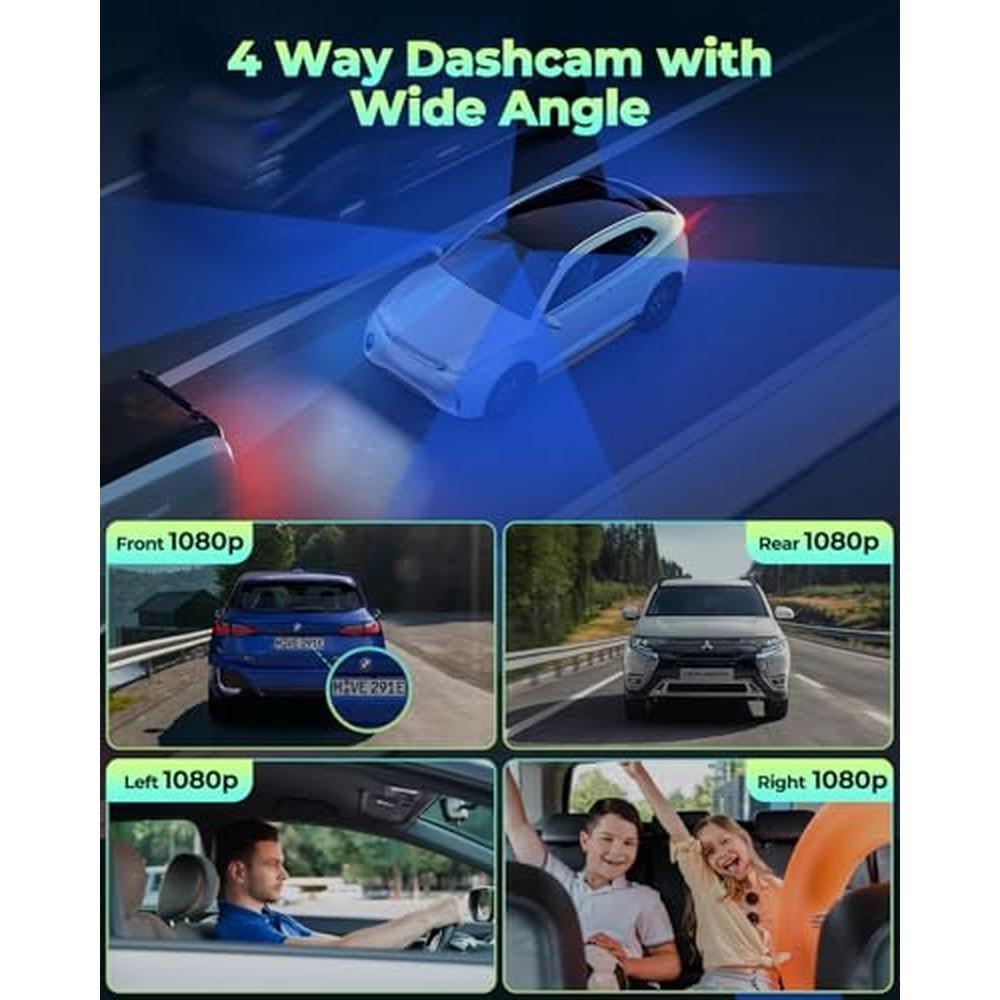 LAMTTO Dash Cam | 4-Channel 1080p Front and Rear Camera | 24-Hour Security Parking Monitor with Hardwire Kit