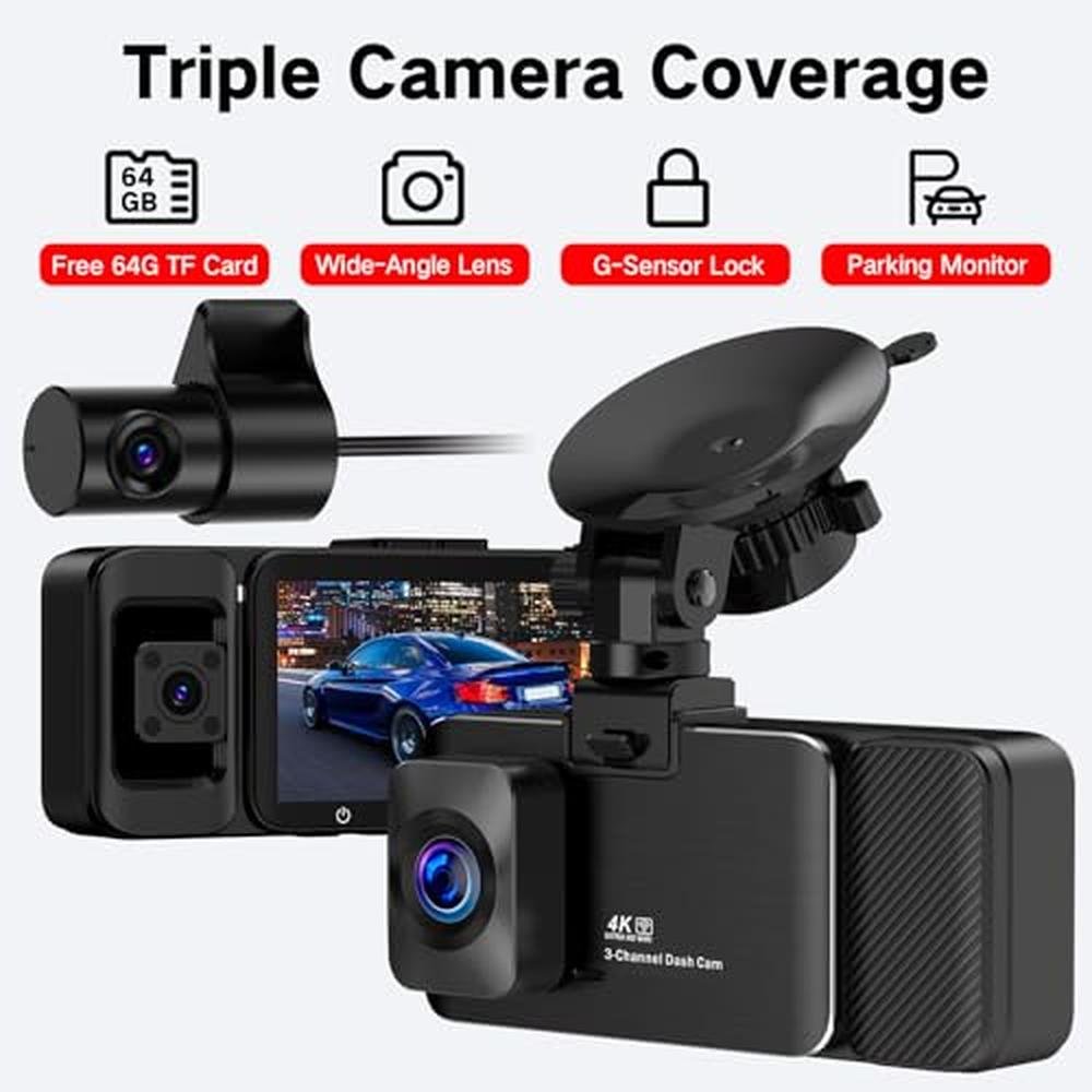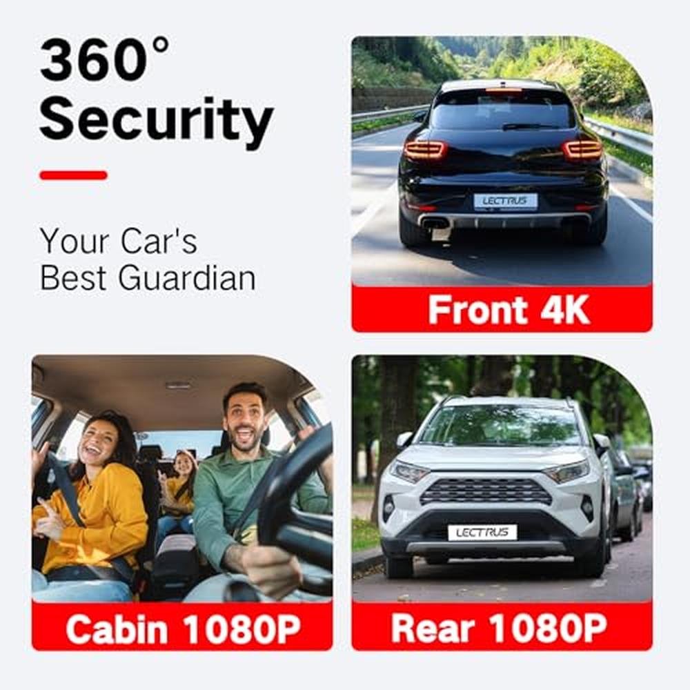 Dash Cam | LECTRUS 4K Front and Rear Inside 3-Channel Dash Camera | 5G WiFi and GPS Enabled