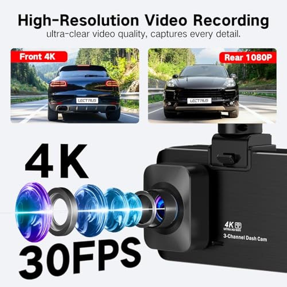 • Experience high-quality 4K footage with the LECTRUS 4K Dash Cam's advanced 3-channel recording feature