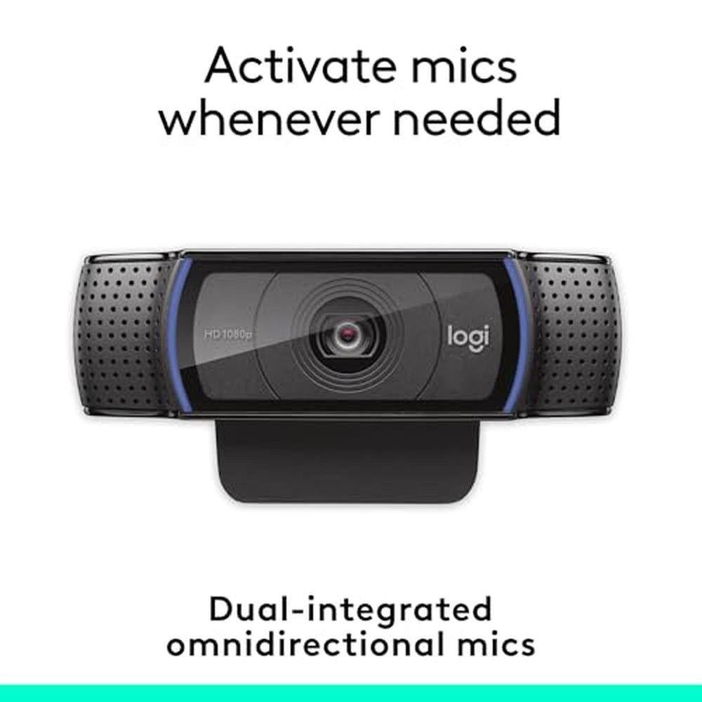 - The C920e webcam features two integrated omnidirectional microphones that capture your audio clearly from up to one meter away, so your voice always sounds natural and clear.