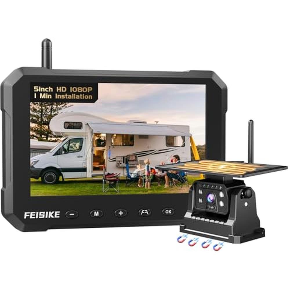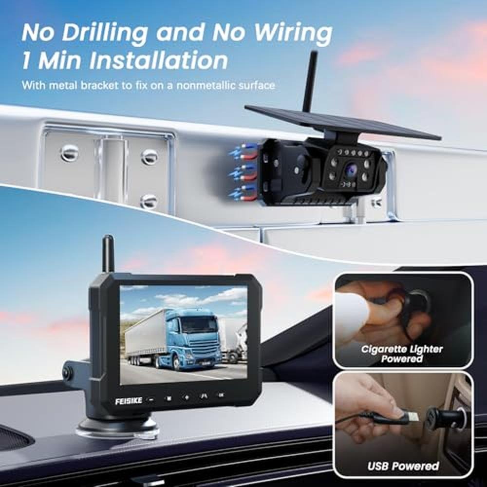 Experience the pinnacle of backup camera technology with our Magnetic Solar Wireless Backup Camera, expertly designed for trucks, RVs, and trailers. As a premier choice among backup camera best buy options, this 5-inch camera boasts a seamless, no-drill installation process, offering an expansive 150-degree angle view and crisp 1080P resolution. With its sophisticated camera backup features, including night vision and an extended 24-hour battery life, you'll indulge in heightened safety and convenience on the road. The stable 2.4Hz signal ensures a reliable connection, making it an ultimate backup camera solution for RVs and trailers. Whether you're navigating through tight spaces or reversing in low-light conditions, our camera backup system has got you covered.