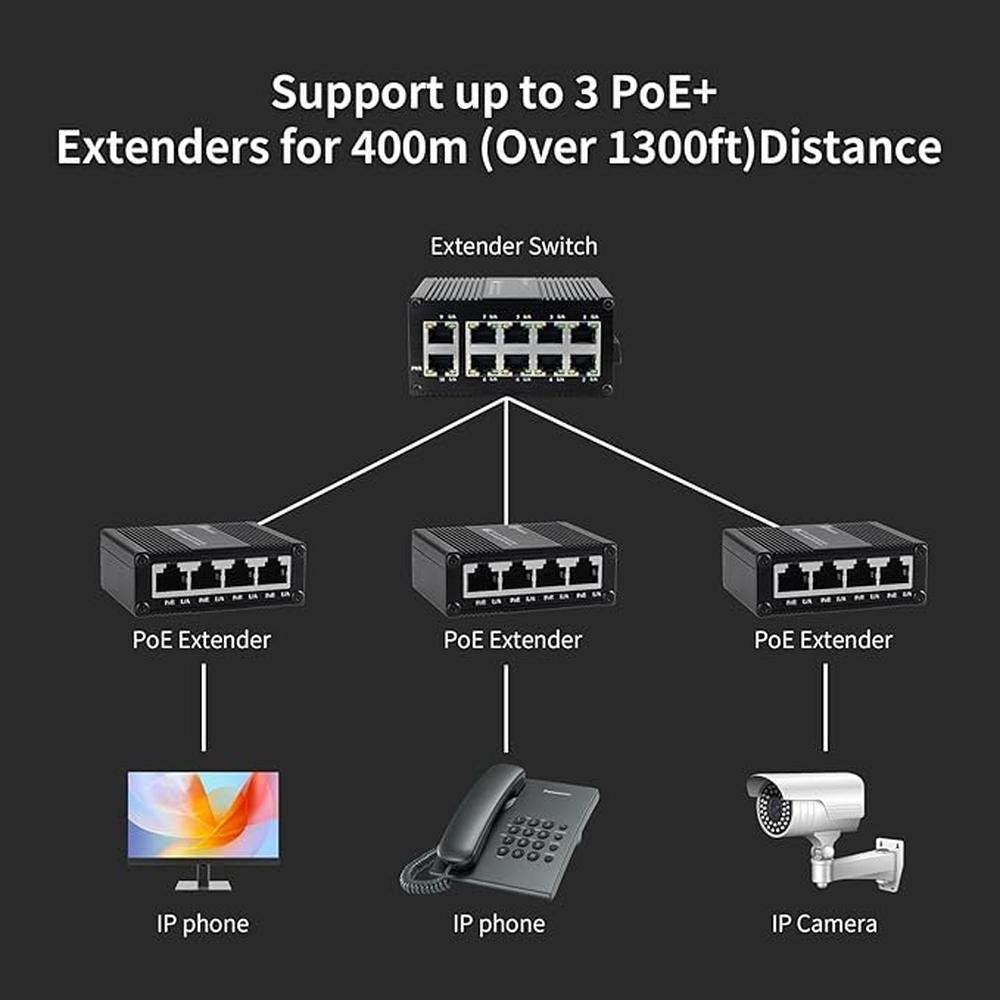 - Supports up to 100m (328ft) of network extension, making it perfect for large buildings or outdoor installations