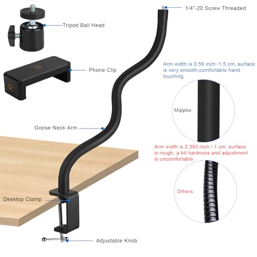 - The Mippko Webcam Stand features a 50cm gooseneck arm, providing unparalleled flexibility and adjustability for optimal viewing angles