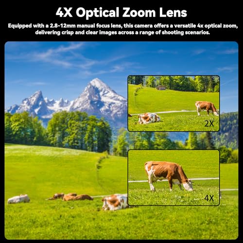 Special Features 4X Optical Zoom with 2.8-12mm Manual Focus Lens, FHD 1080P, Low Light