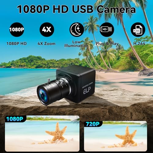 • The MMlove 1080P FHD USB Camera features a 4X optical zoom with a 2.8-12mm manual focus lens, utilizing H.264 encoding to deliver 30fps in low light conditions