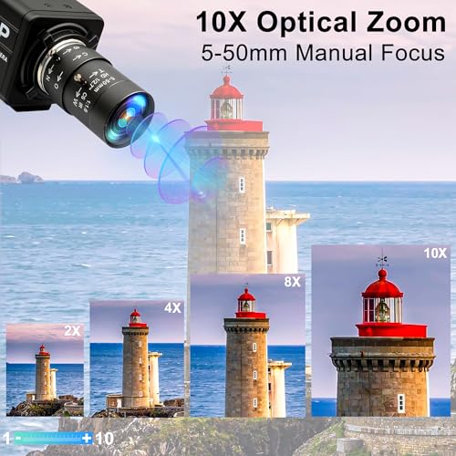 Experience high-quality video capture with the MMlove 8MP USB Camera, featuring a 10X optical camera zoom lens that allows for precise close-up shots and smooth zooming in and out. With a resolution of 2448P and a frame rate of 30fps, this camera zoom device is perfect for industrial machine vision applications, golf swing analysis, and other uses that require detailed, high-speed video. The manual zoom control enables you to easily adjust the focal length between 5-50mm, making it an ideal camera zoom solution for PC and Raspberry Pi users. Whether you're looking for the best camera zoom, this UHD 8MP USB Camera delivers magnificent 8MP UltraHD footage with a 13.2 CMOS image sensor, soaking in the entire scene and dynamically painting vivid colors and rich imagery onto your desktop or mobile device in 8MP UltraHD 3264x2448 resolution.