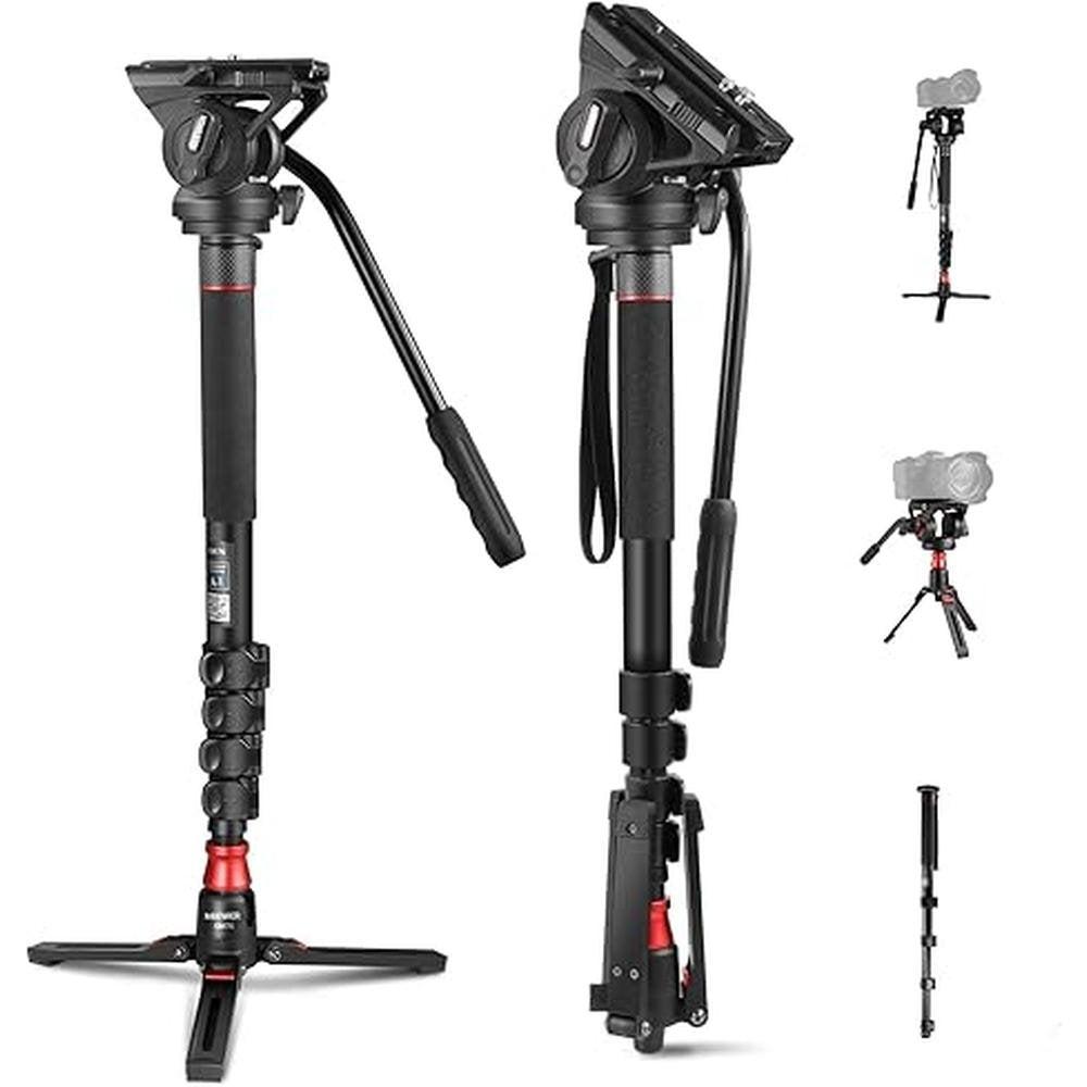 NEEWER Professional Camera Monopod with Feet, 70.5"/179cm Telescopic Portable Aluminum Travel Monopod with Pan Tilt Fluid Head and Removable Tripod Base for DSLR Camera Camcorder, Max Load 13.2lb/6Kg