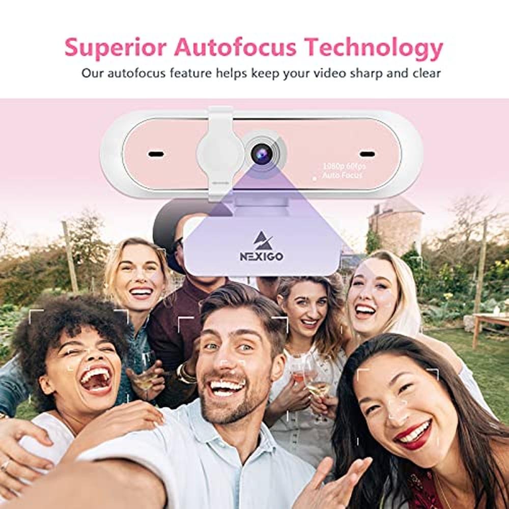 NexiGo N660P 1080P 60FPS Webcam with Software Control, Dual Microphone & Cover, Autofocus, HD USB Computer Web Camera, for OBS/Zoom/Skype/FaceTime/Teams/Twitch, Pink