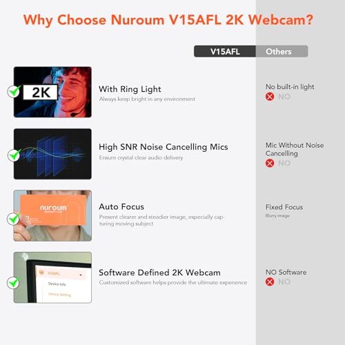 Compatible with Zoom, Teams, Skype, and more, it supports firmware updates through Nuroum's website, ensuring you have the latest features and improvements. Elevate your streaming experience with the NUROUM V15AFL 2K Webcam, designed to provide a superior and seamless video conferencing experience.