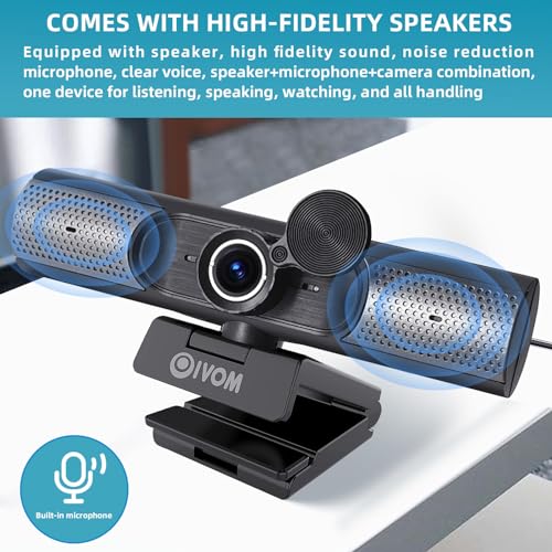 - The Oivom Webcam features a wide-angle lens and built-in microphone and speaker for high-quality video and audio streaming