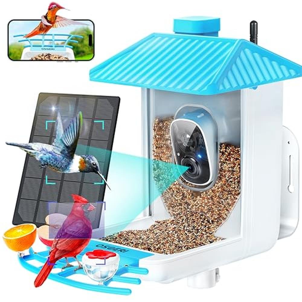 - Watch Birds On Your Phone in Real TimeYou no longer need binoculars to watch birds! Oseori bird feeder with camera wireless outdoor can auto capture and record bird videos all incoming birds (like bluebirds, hummingbirds, etc.), and you will receive real-time notifications of bird visitors via the phone app. The smart bird feeder camera brings you closer to birds and closer to nature.