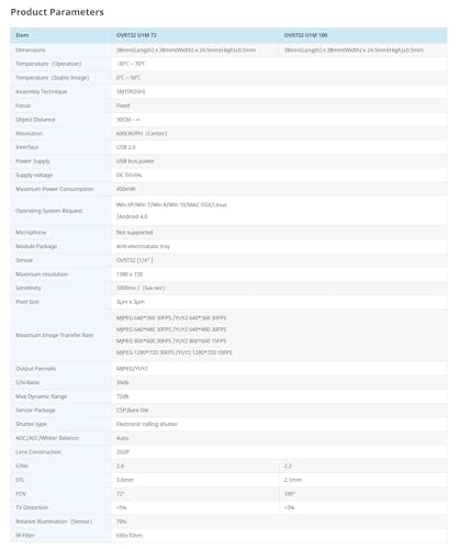 Multi-OS Compatibility and Advanced Applications: Compatible with Windows XP/7/8/10, macOS, Linux, and Android, the OV9732 U1M 100 supports AI vision development, telemedicine, live streaming, and IoT projects. The sensor's low-light optimization enhances performance in dimly lit conditions, while the 720p HD resolution ensures professional-grade results.