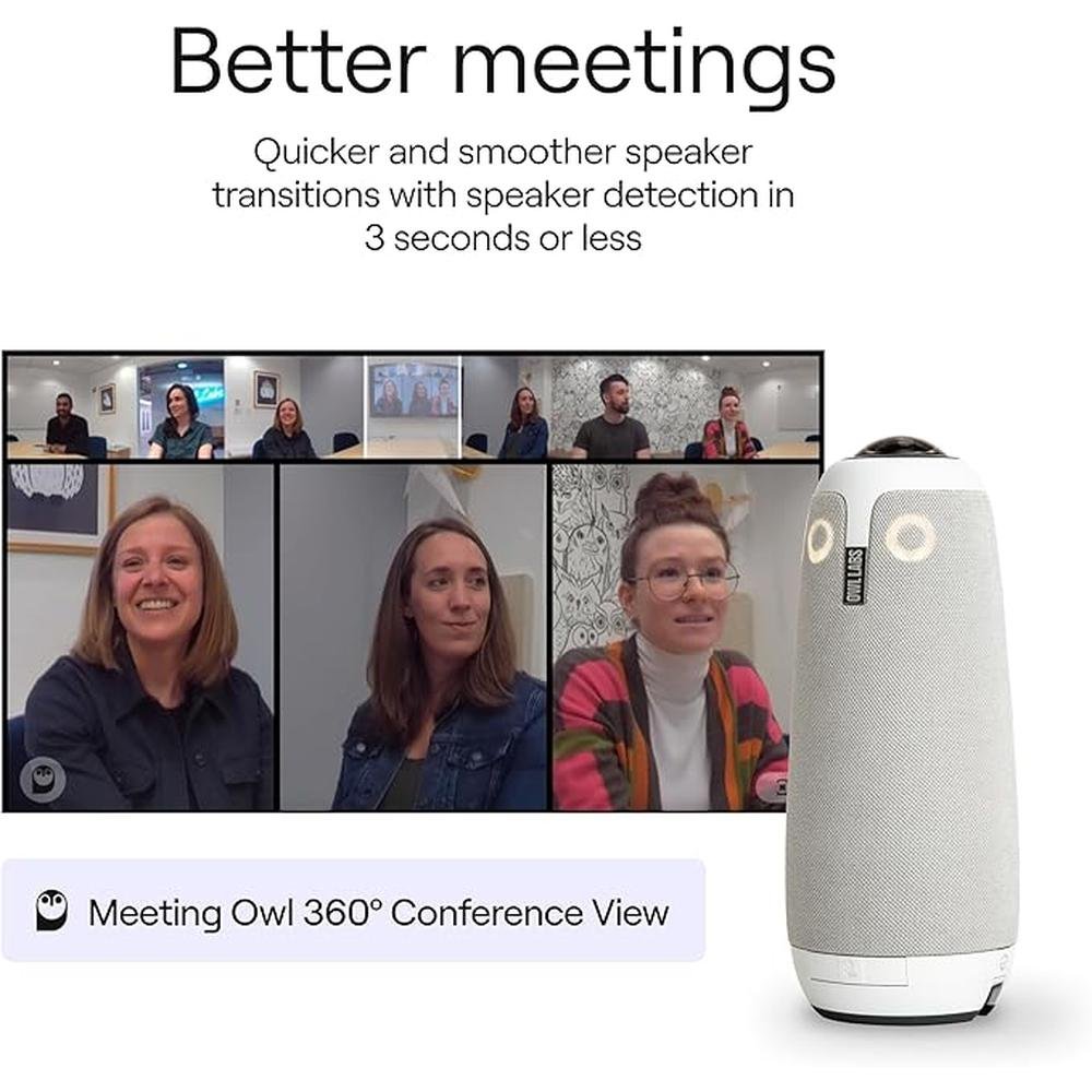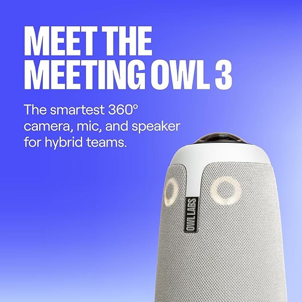 - ENGAGING HYBRID COLLABORATION. The Meeting Owl 3 is an all-in-one video conferencing device that captures 360 video in 1080p HD and 360 audio up to 18 (5.5m) away. Automatically focuses on whoever is speaking to foster active collaboration and increased participation while showing a 360 view of the room.