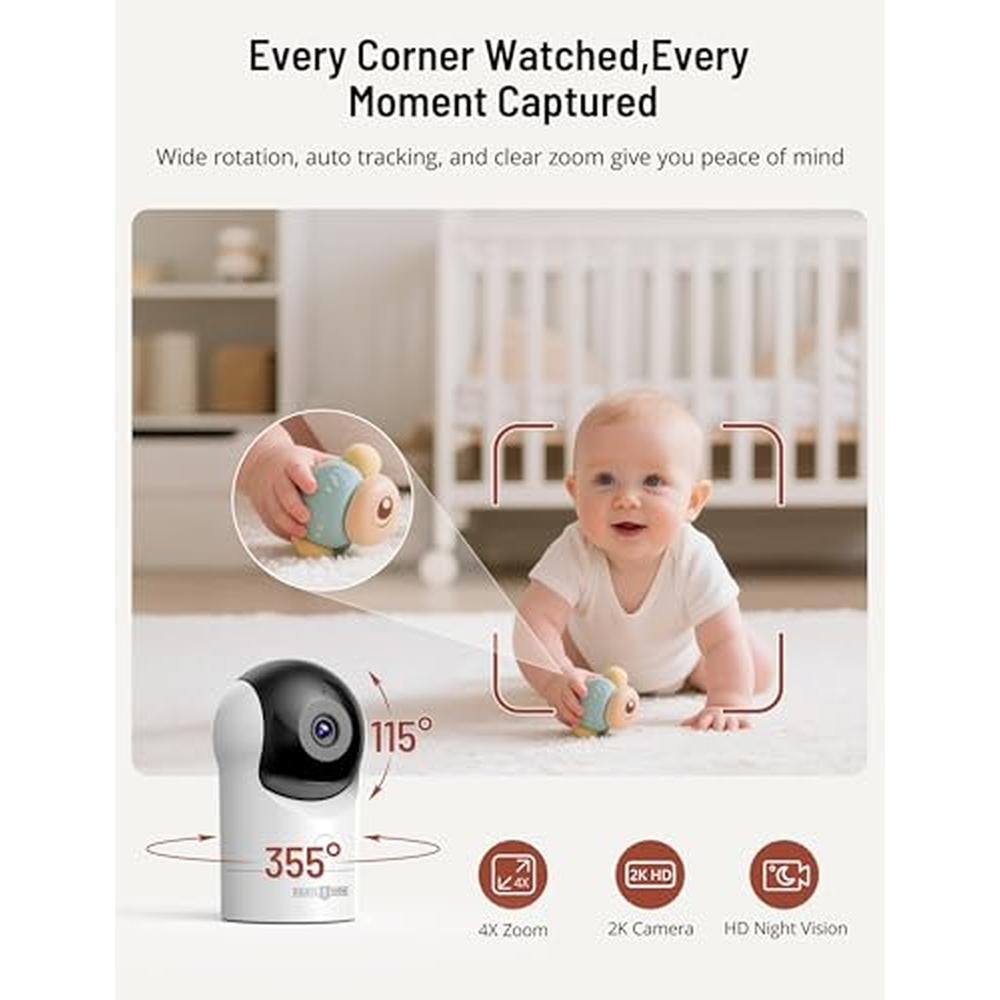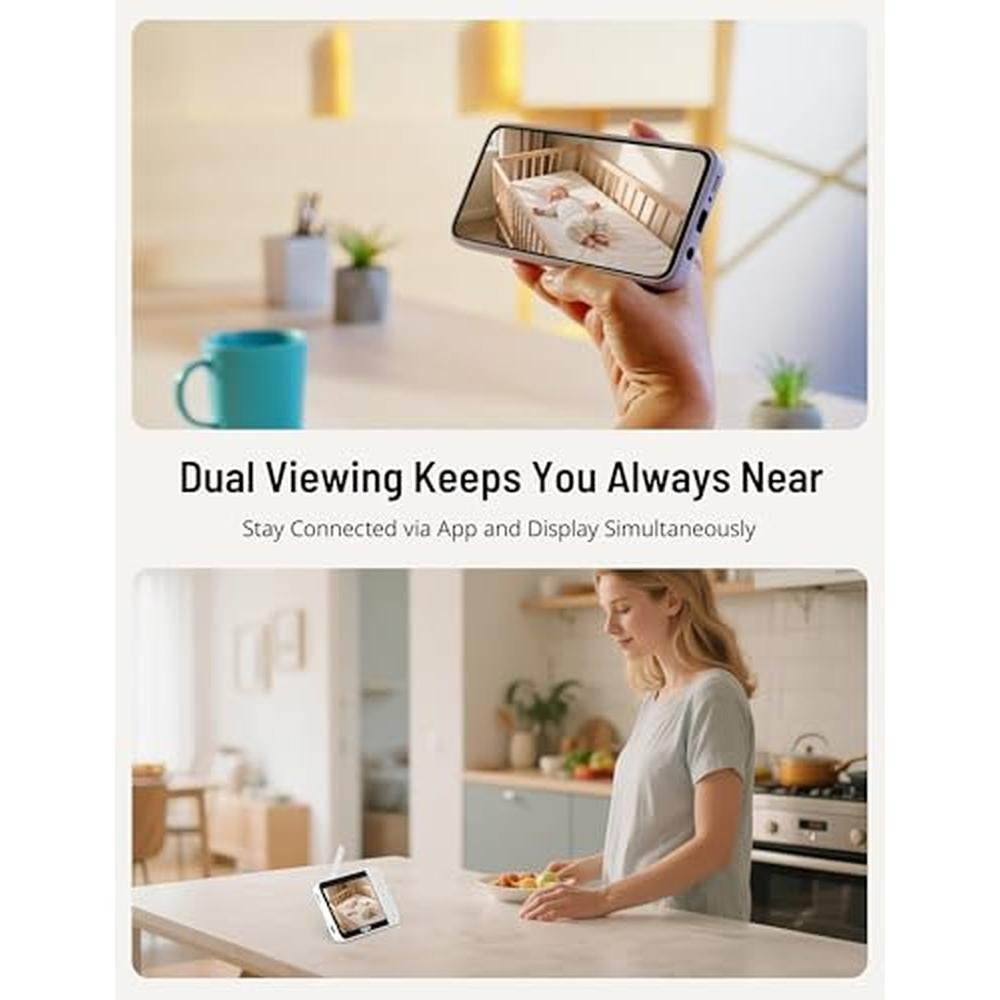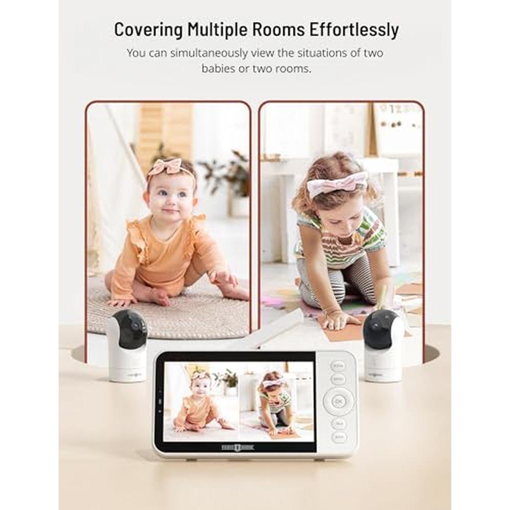 • 2K Baby Monitor with 2 Cameras & Split Screen Watch twins or two rooms at once with crystal-clear 2K video on the app and 720P on the 5'' screen. Split-screen mode and 4X zoom let you check every detail, from the nursery to the playroom.