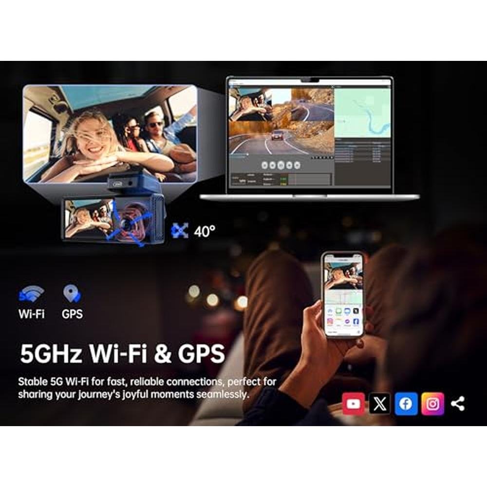 1080p Dash Cam | Pelsee 4K 3 Channel Front and Rear Camera | WiFi App 64GB Card Included