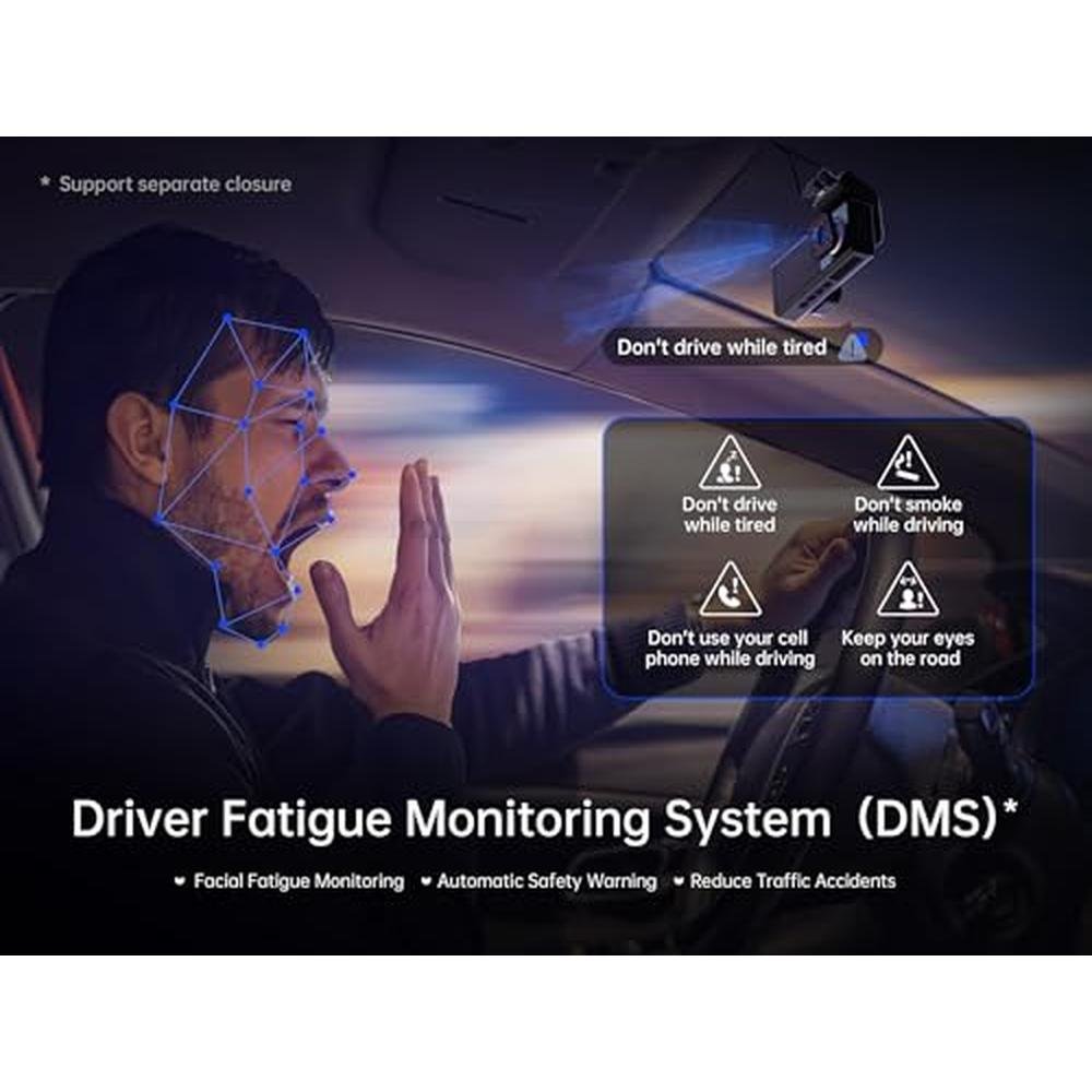 Experience the ultimate in-car surveillance with the Pelsee 4K 3 Channel Dash Cam, featuring a high-resolution 4K front camera and dual 1080p rear and interior cameras. As a top-rated 1080p dash cam front and rear solution, this dash camera for cars provides unparalleled video quality, capturing every detail on the road. With built-in WiFi and a dedicated app, you can easily review footage, adjust settings, and transfer files. The included 64GB memory card ensures ample storage, and the dash cam supports up to 256GB for extended recording. Equipped with advanced features like ADAS and DMS, this 4K 3-Channel Dashcam Front and Rear Camera, experience crystal-clear footage from three different angles of Dashboard Camera- front, rear, and interior. With 4K+1080P+1080P recording capabilities, you can capture every detail of your journey, ensuring valuable evidence for insurance claims and disputes. 5GHz Wi-Fi and Built-in GPS, stay connected and track your route in real-time with our built-in GPS and speed tracking feature. The 5GHz Wi-Fi connectivity allows for seamless playback, download, editing, and sharing of your recorded videos through the Pelsee Cam app. Say goodbye to buffering and enjoy accurate accident location tracking. Voice Control and Privacy Settings, stay focused on the road while easily controlling the 360 camera for car with eight voice commands. Additionally, our vehicle camera features privacy settings that allow you to disable the built-in camera and microphone, ensuring your privacy whenever you need it. Reliable Accident Recording, 360 dash camera for cars 24/7 night vision, never miss a critical moment with our reliable accident recording function. Even if your memory card is full, the loop recording feature ensures continuous recording by overwriting old footage. When a sudden collision is detected by the G-sensor, the 24 hour recording dash cam automatically locks and saves the corresponding video, providing crucial evidence.