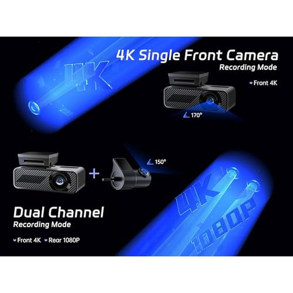 | Special features | 1.5'' IPS Display, Night Vison, Easy Installation, App Control, Built-In WiFi, G-Sensor, 24H Parking Mode, Loop Recording, Single Front 4K Dash Cam, Dual Channel 4K +1080P, 64GB Card, Voice Control |