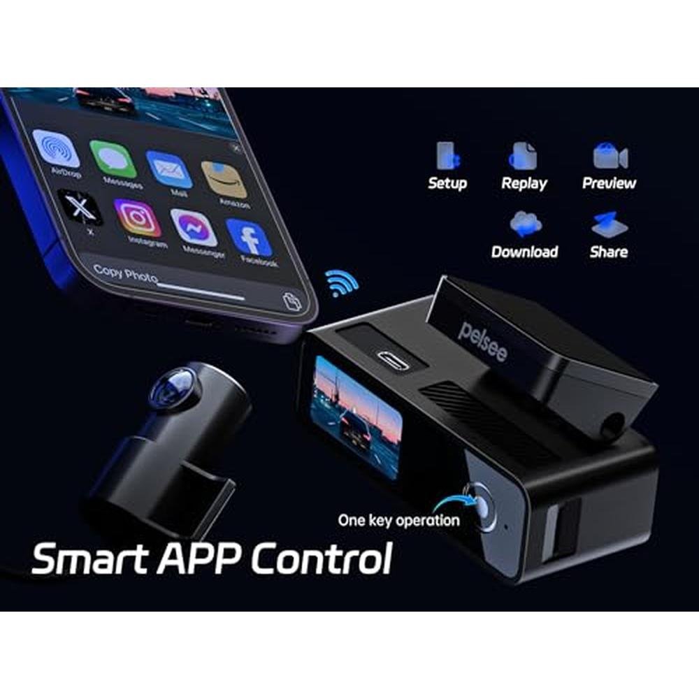 Dash Camera | Pelsee P1 Duo 4K Front and Rear | Wi-Fi App Control and Night Vision