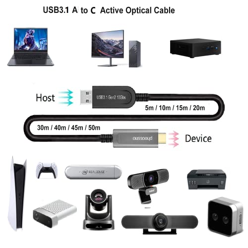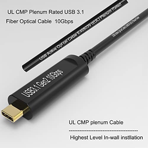 Phoossno UL CMP Plenum Rated USB A to C Fiber Optical 3.1 Cable | 10Gbps 33FT | Compatible with Microsoft Azure Logitech Camera