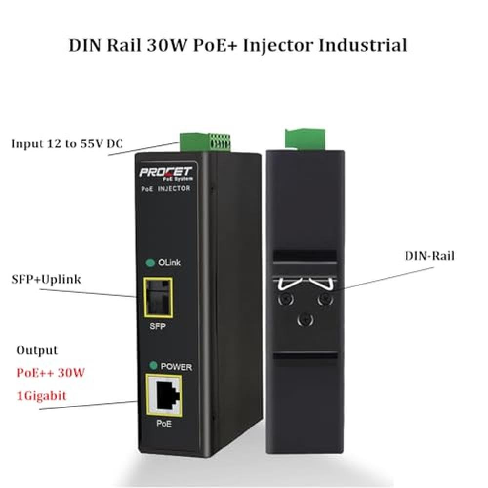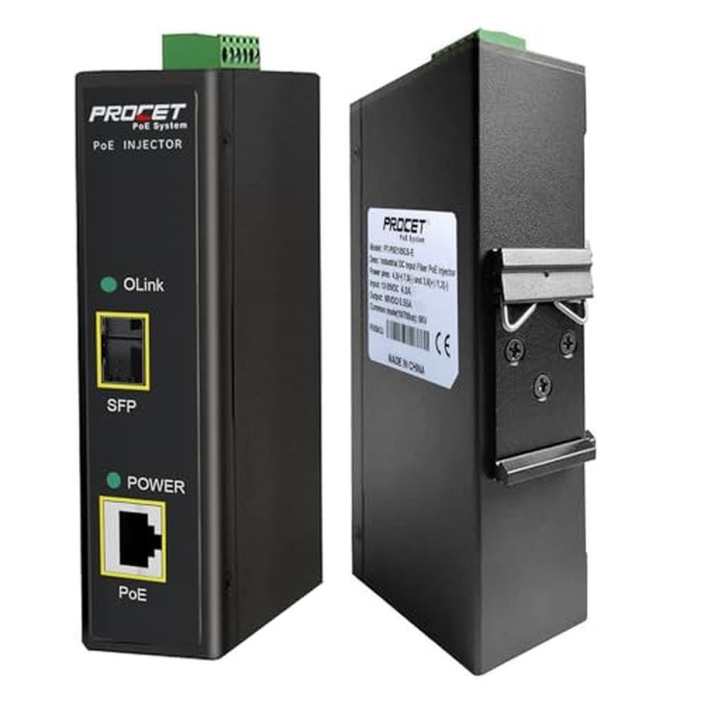 PROCET 30W SFP Fiber PoE Injector DIN Rail SFP/Uplink PoE+ Power Injector Gigabit Industrial, IEEE802.3af/at Compliant for IP Camera, Access Point, POS, Kiosks, PT-PSE105GS-E