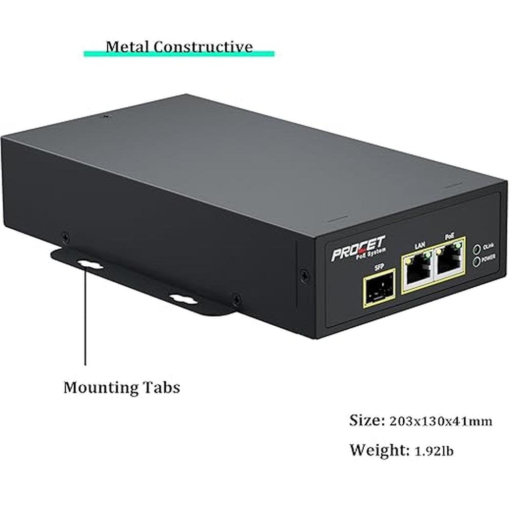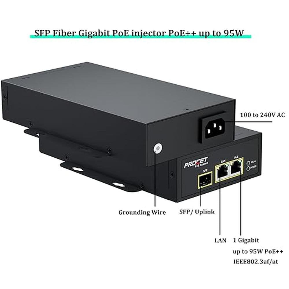 PROCET SFP Fiber PoE Injector PoE++ up to 95W Gigabit Uplink Support Power Over Ethernet, Wide Temp -40 to 149 for PTZ Webcam, Sisco Access Point, Small Cell, Smart Factory, Commercial Display TV