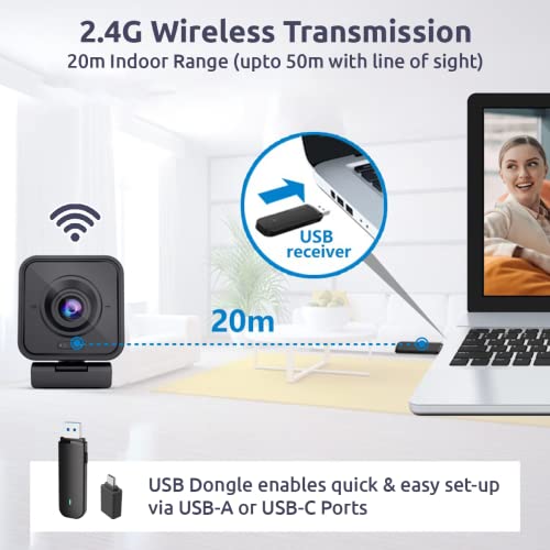 Special Features USB-A & USB-C, Wireless Connectivity Webcam, Wireless Webcam with USB Receiver, Built in Noise Cancelling Mic with Noise Reduction Algorithm, HD 1080p 2MP