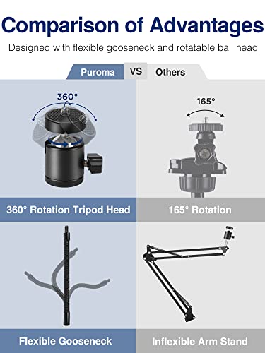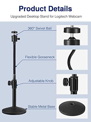 Webcam Stand | Puroma Goose-Neck Mount Stand Upgraded Desktop Stand for Logitech Webcam C922 C930e C920S C920 C615 | Adjustable Height and Angle